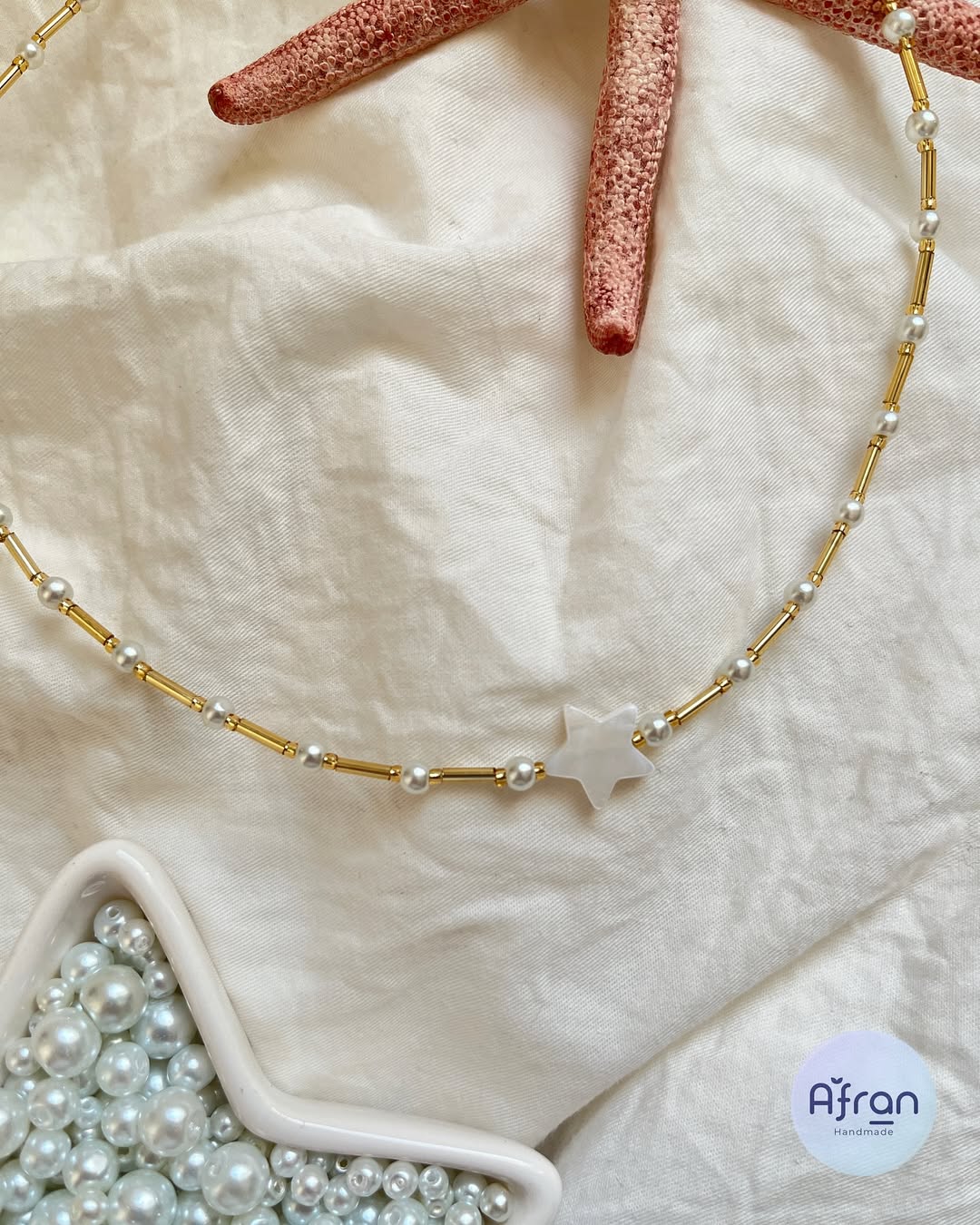 ستارهای کوچک، اما با نوری که راهو پیدا میکنه… صدفی، لطیف، طلایی گردنبند نُوا